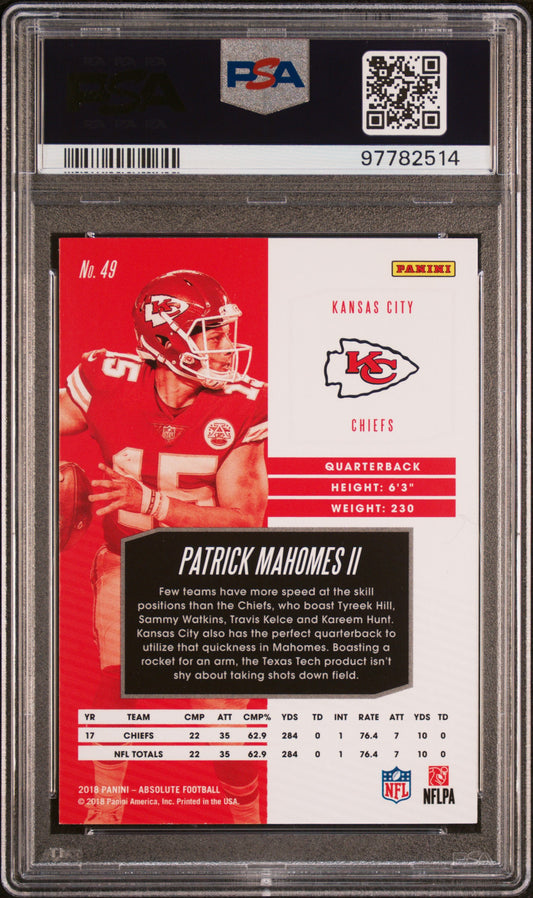 2018 Panini Absolute #49 Patrick Mahomes Ii PSA 9