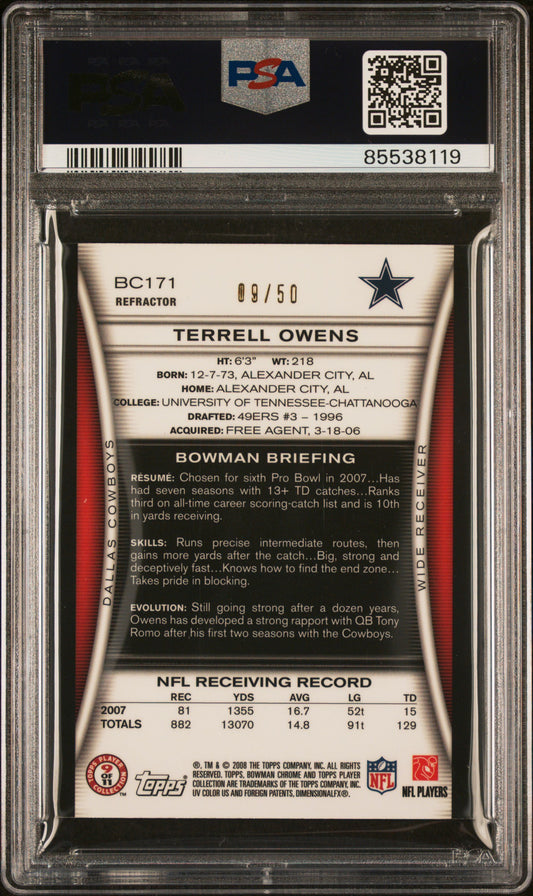 2008 Bowman Chrome #BC171 Terrell Owens Gold PSA 9