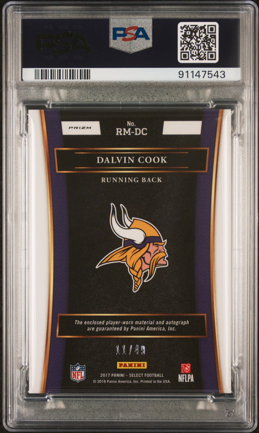 2017 Panini Select #RM-DC Dalvin Cook Rookie auto relic Purple Prizm PSA 10 #/49