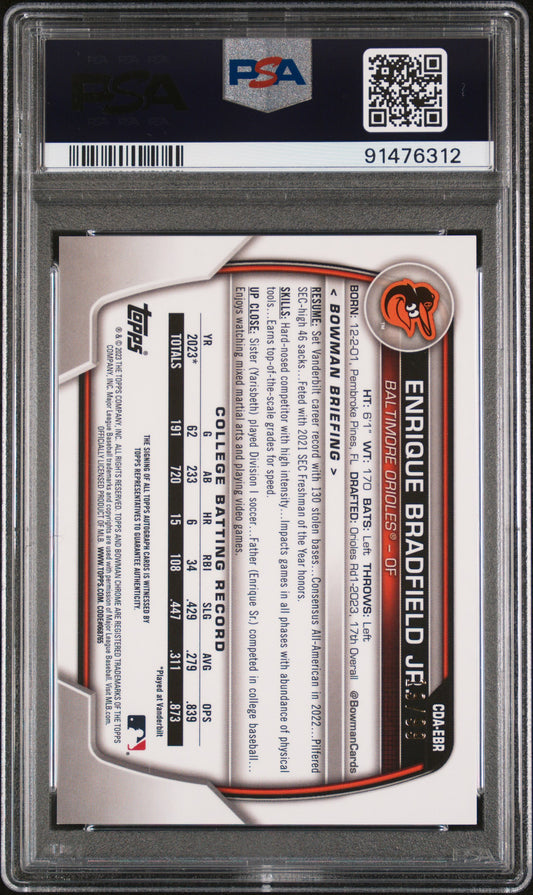 2023 Bowman Draft Sapphire Chrome #CDAEBR Enrique Bradfield Jr Auto 10 #/499