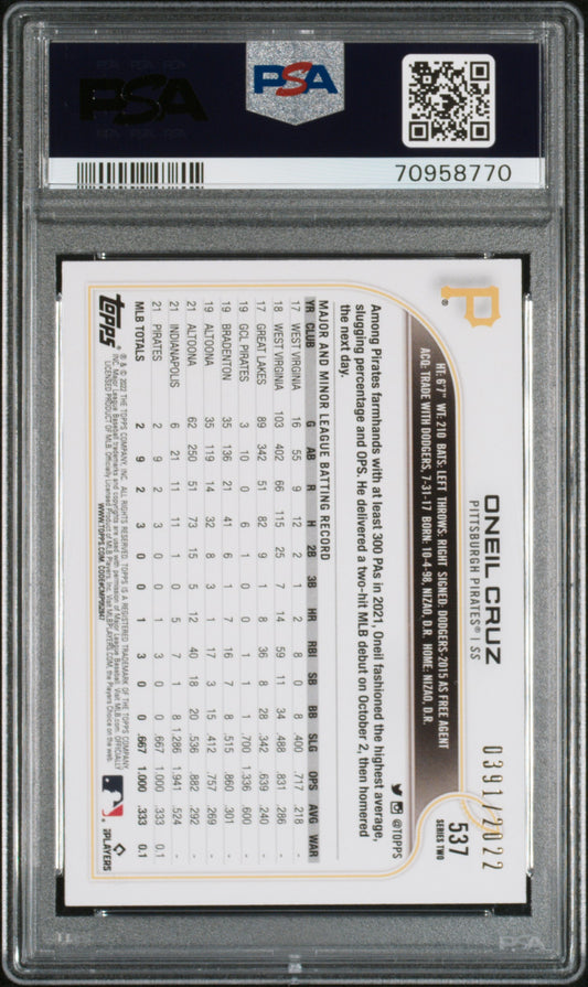 2022 Topps #537 Oneil Cruz Gold PSA 10 #/2022
