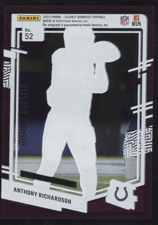 2023 Clearly Donruss #52 Anthony Richardson Rated Rookie Autographs Purple
