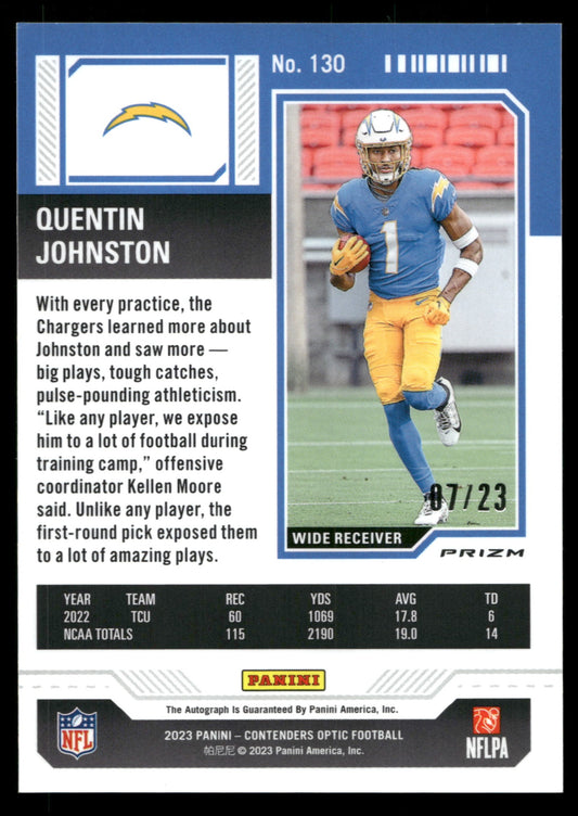 2023 Panini Zenith #130 Quentin Johnston Contenders Rookie Ticket Preview Blue