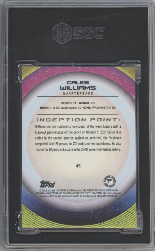 2022-23 Bowman University Inception #45 Caleb Williams Orange Foil SGC 9.5