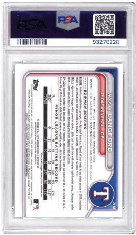 • 2024 Bowman #CPA-WLA Wyatt Langford Chrome Prospects Autographs PSA 9
