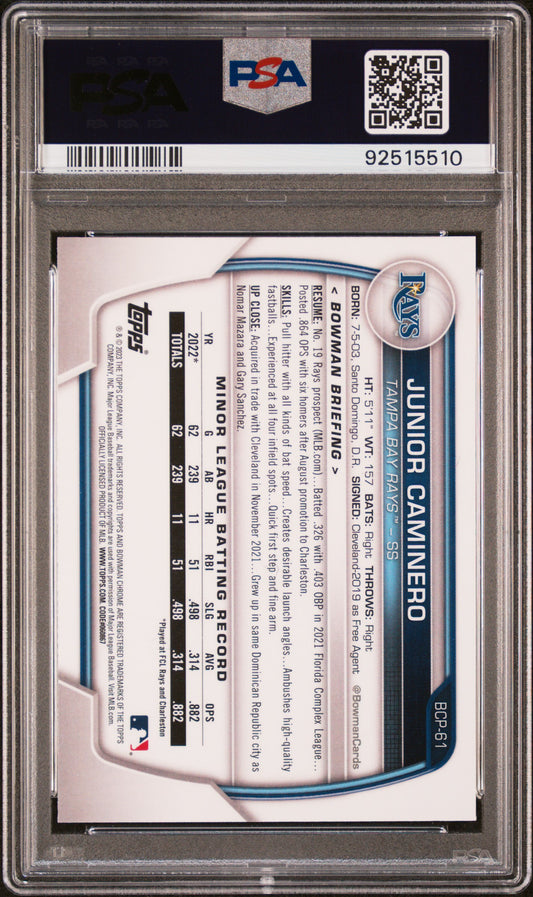 • 2023 Bowman Mega Box Chrome #61 Junior Caminero Chrome PSA 10