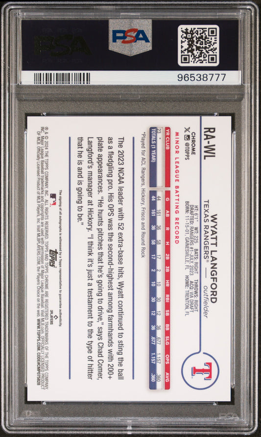 • 2024 Topps Chrome Rookie Autographs #RAWL Wyatt Langford Autograph PSA 10